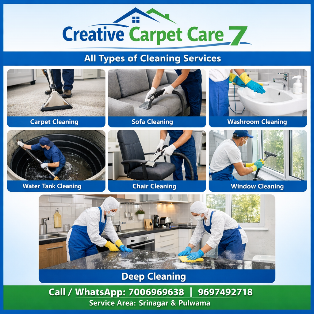 At Creative Carpet Care 7, we specialize in professional cleaning services that keep homes and commercial spaces fresh, hygienic, and spotless.